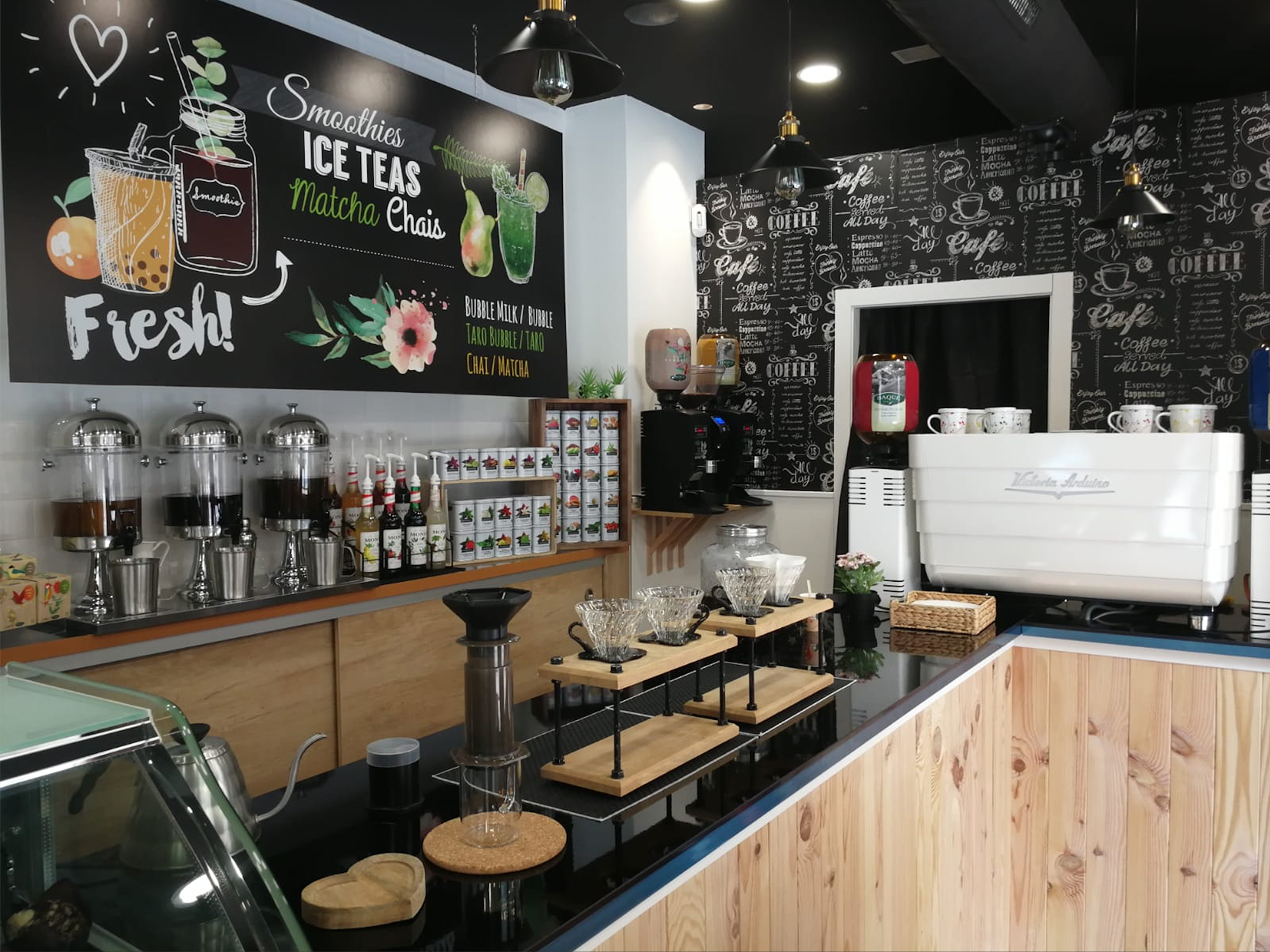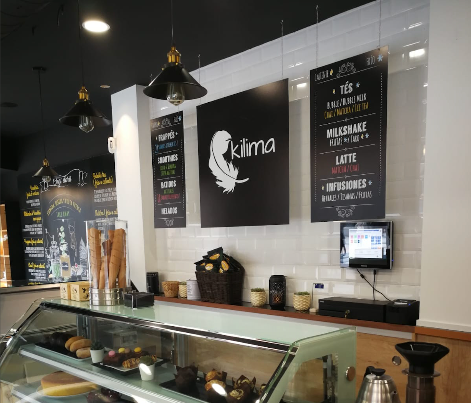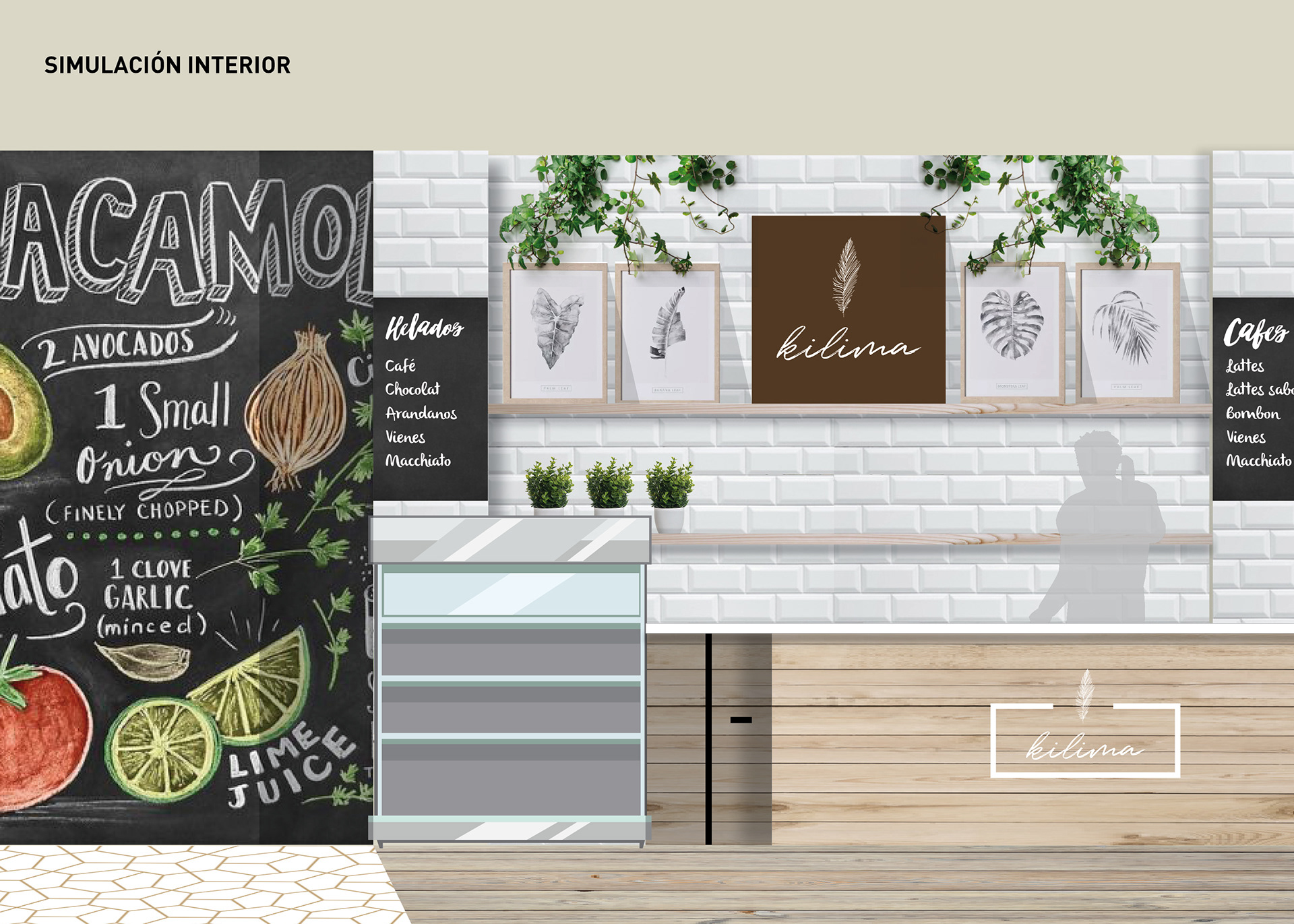 Proyecto realizado de la mano de Cafés Baqué para su cliente. Análisis de espacio y necesidades del cliente a pie de obra, propuesta de materiales, estilos visuales y diseño de piezas gráficas para su producción.