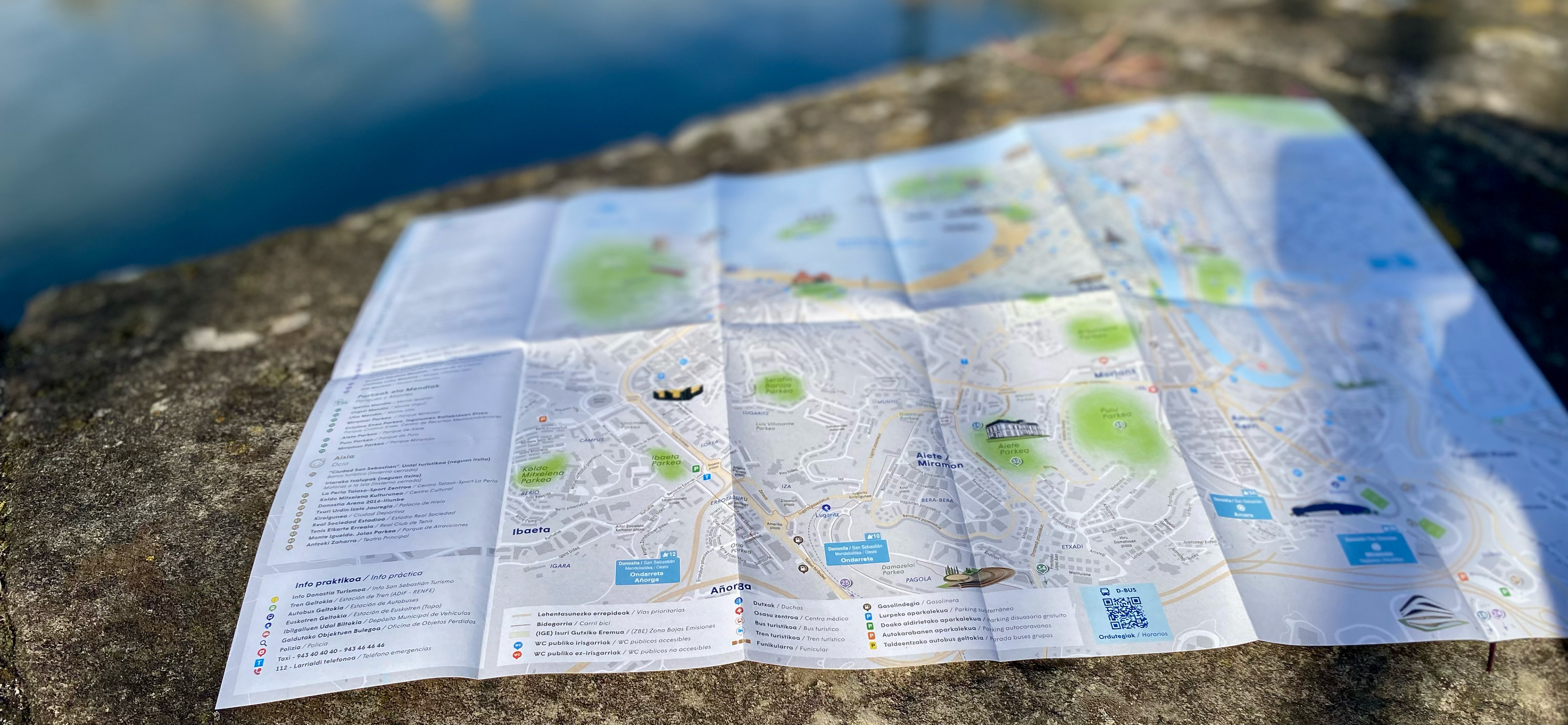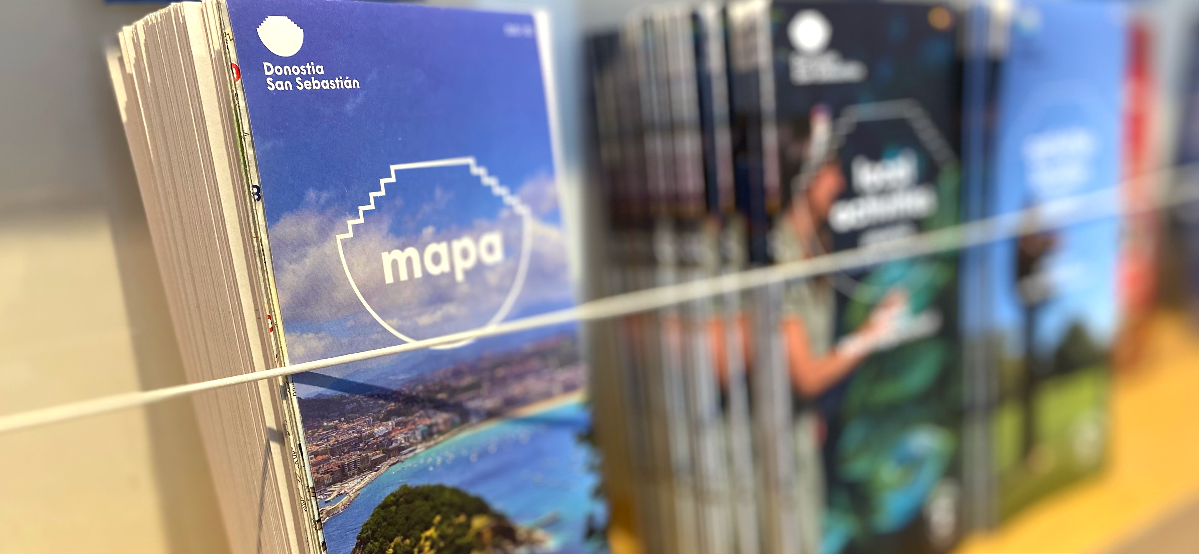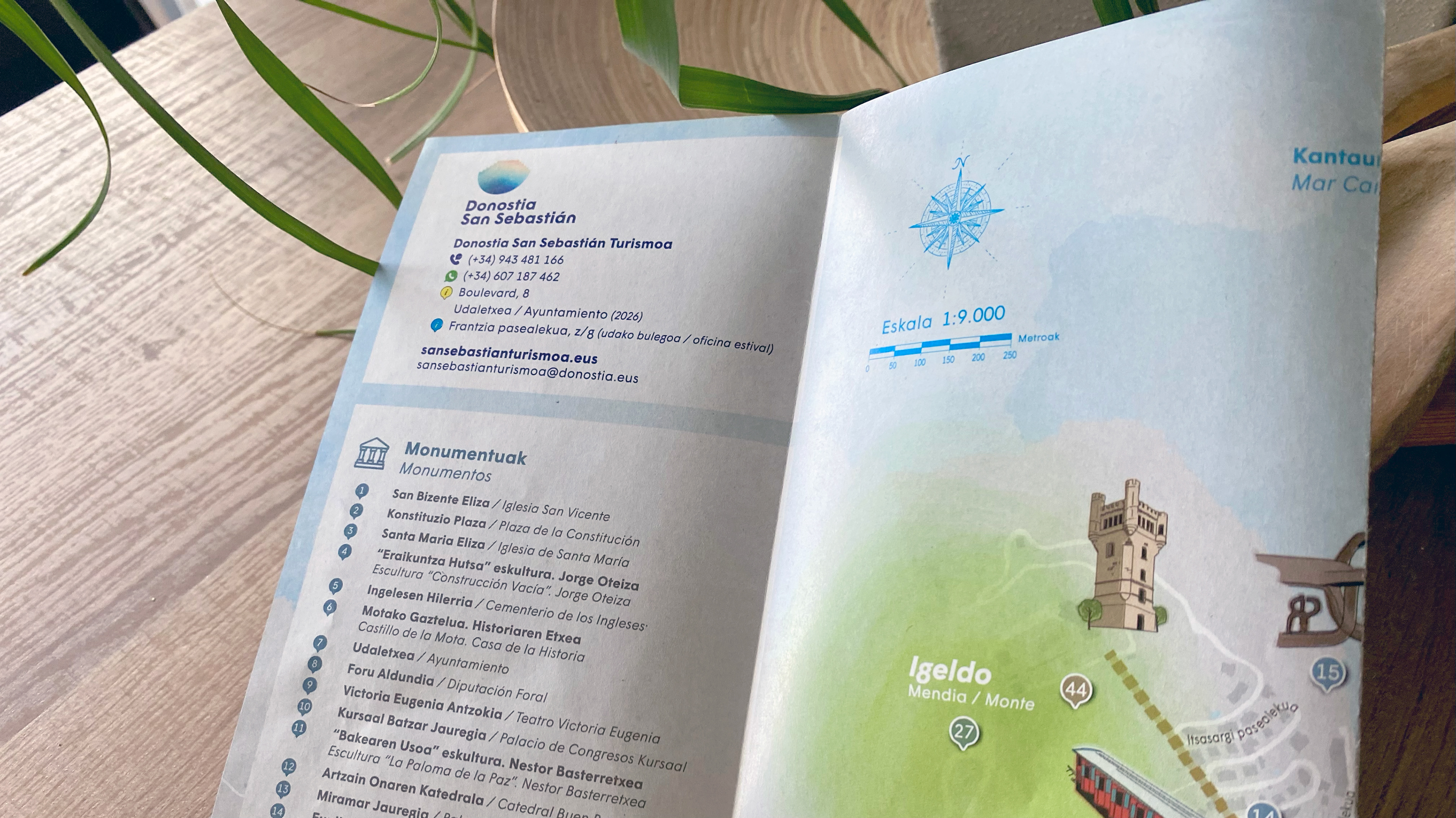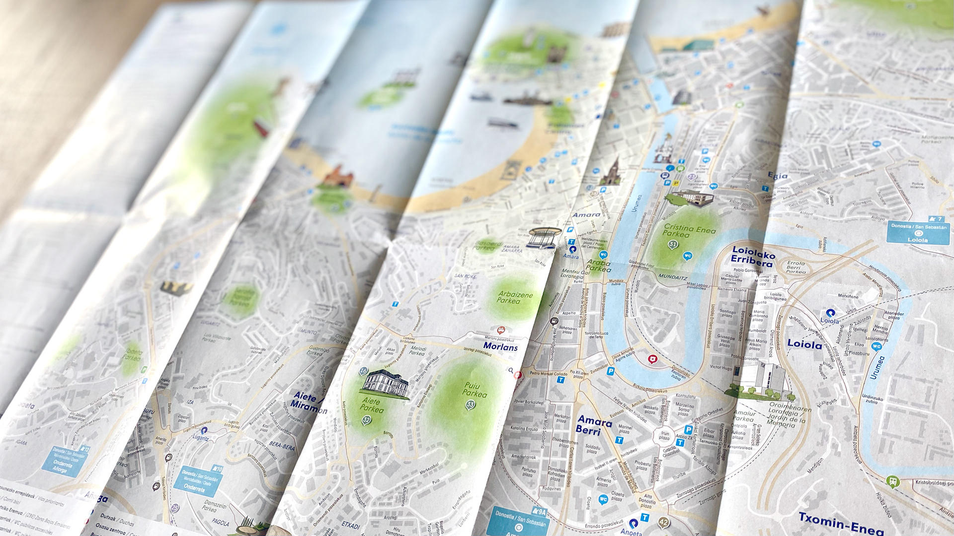 En colaboración estrecha con la empresa GEOGRAMA que se ha encargado de la parte técnica, impresión y logística del proyecto, nos hemos encargado mano a mano con el estudio SOBREBLANCO de la dirección de arte e ilustraciones del nuevo mapa turístico de San Sebastian. La licitación del concurso del Departamento de Turismo de Donostia-San Sebastián, contó con otras cuatro agencias competidoras. Un trabajo en equipo del que hemos quedado muy satisfechos y del que se han impreso 250.000 ejemplares en cuatro idiomas y formato 600x420 plegado en acordeón.